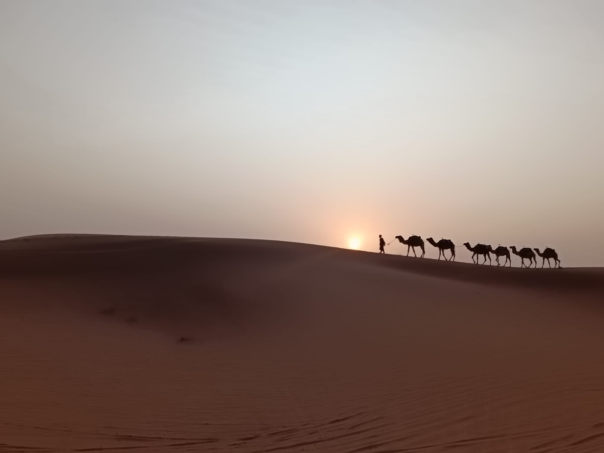 Las dunas parecen moverse con la luz, el viento dibuja formas nuevas a cada minuto y el silencio es tan inmenso que abraza. El Sahara invita a la introspección: a mirar lejos, a respirar hondo, a dejar que la calma se instale.